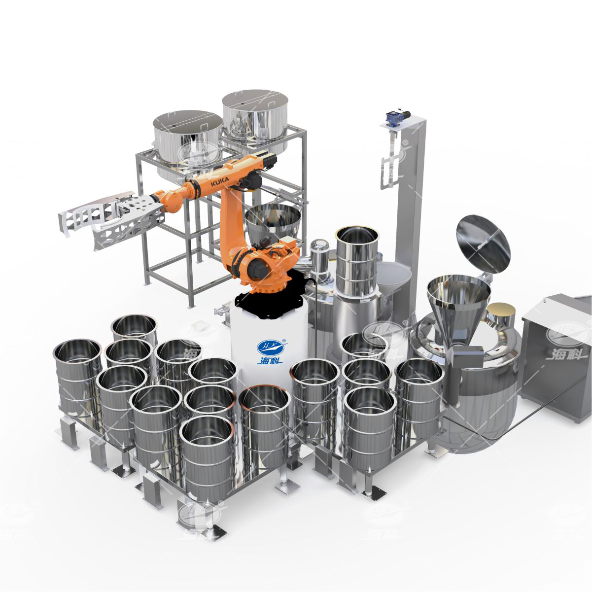該系統(tǒng)由中央系統(tǒng)控制,采用機器人抓取投料,過程穩(wěn)定高速。