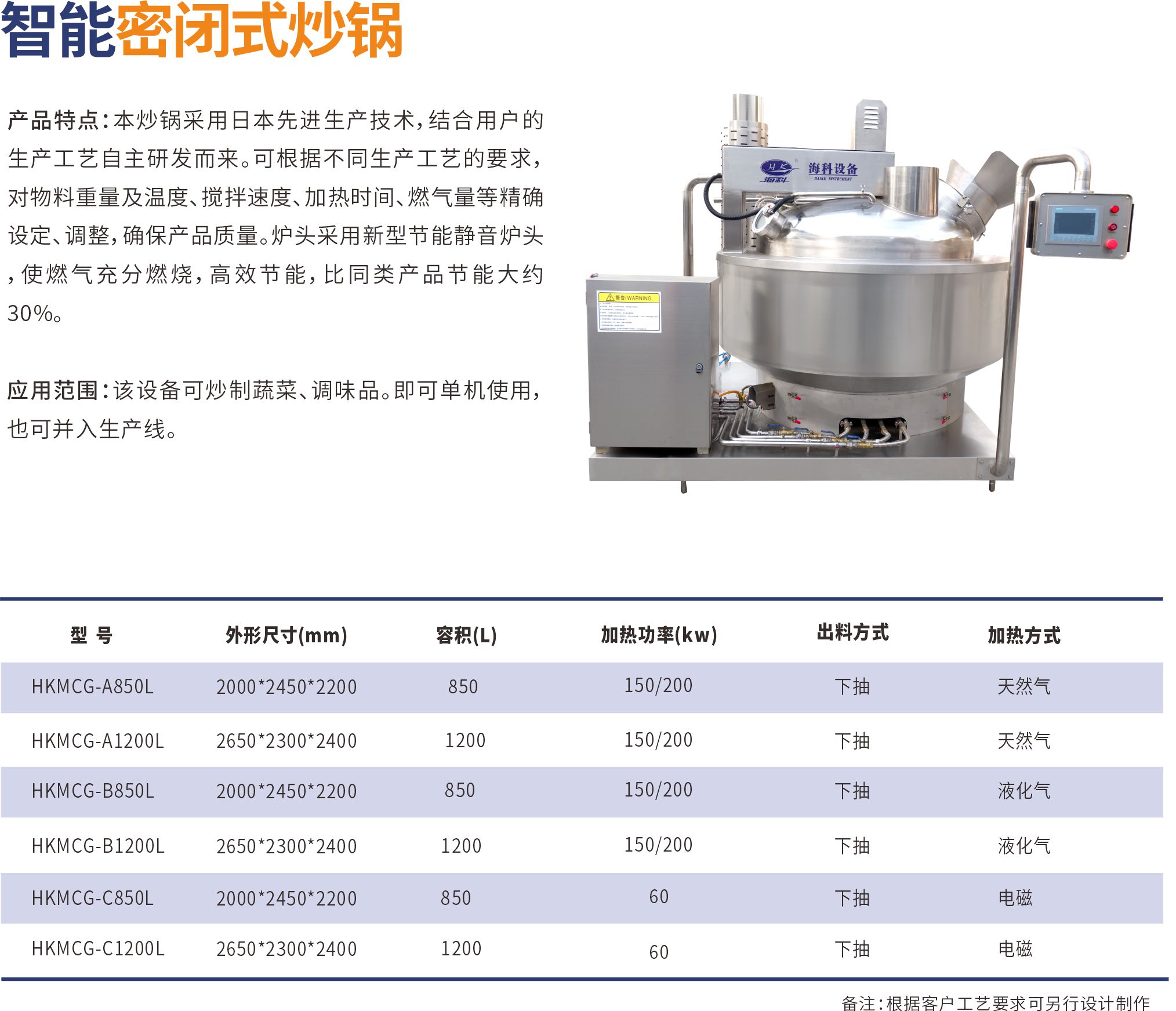 本炒鍋采用日本先進(jìn)生產(chǎn)技術(shù),結(jié)合用戶的生產(chǎn)工藝自主研發(fā)而來(lái)??筛鶕?jù)不同生產(chǎn)工藝的要求,對(duì)物料重量及溫度、攪拌速度、加熱時(shí)間、燃?xì)饬康染_設(shè)定、調(diào)整,確保產(chǎn)品質(zhì)量。爐頭采用新型節(jié)能靜音爐頭,使燃?xì)獬浞秩紵?,高效?jié)能,比同類產(chǎn)品節(jié)能大約30%。